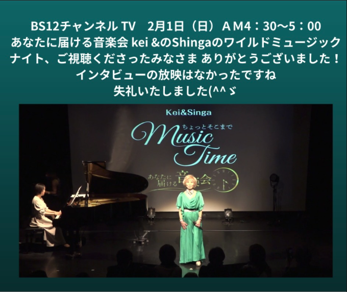 BS12チャンネル TV出演のお知らせ〜!
